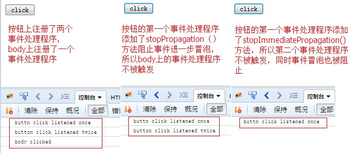 異:二者的區別在於當一個事件有多個事件處理程序時,stopImmediatePropagation()可以阻止之後事件處理程序被調用。