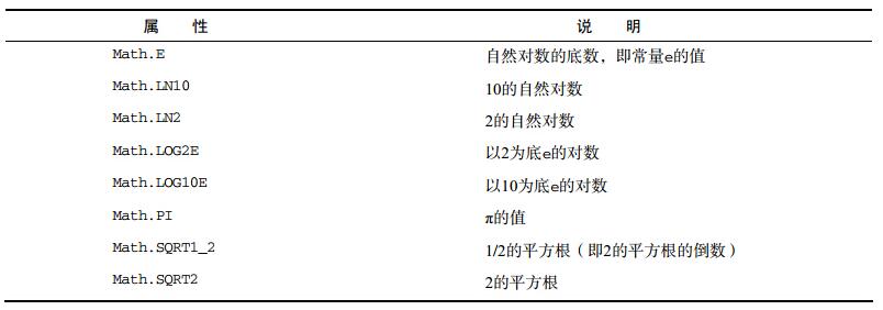 Math對象的屬性大多是一些數學計算中的特殊值。