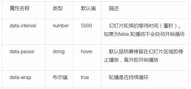 除了data-ride="carousel"、data-slide、data-slide-to 以外,輪播組件還支持其他三個自定義屬性:
