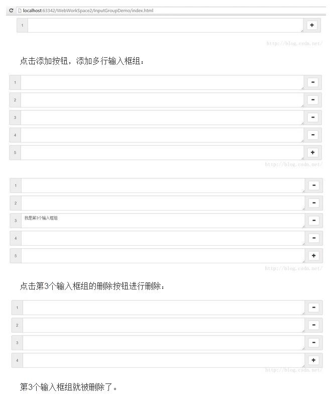 本文實例為大家分享使用jQuery實現輸入框組input-group的添加與刪除操作,供大家參考,具體內容如下