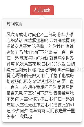 <a href="javascript:void(0)" id="a_pop" class="btn btn-danger" data-placement="bottom" data-content=" 風吹雨成花 時間追不上白馬 你年少掌心的夢話 依然緊握著嗎 雲翻湧成夏 眼淚被歲月蒸發 這條路上的你我她 有誰迷路了嗎 我們說好不分離 要一直一直在一起 就算與時間為敵 就算與全世界背離 風吹亮雪花 吹白我們的頭發 當初說一起闖天下 你們還記得嗎 那一年盛夏 心願許的無限大 我們手拉手也成舟 劃過悲傷河流 你曾說過不分離 要一直一直在一起 現在我想問問你 是否只是童言無忌 天真歲月不忍欺 青春荒唐我不負你 大雪求你別抹去 我們在一起的痕跡 大雪也無法抹去 我們給彼此的印記 今夕何夕 青草離離 明月夜送君千裡 等來年 秋風起" data-original-title="時間煮雨" >點擊加載</a>