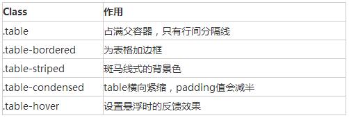 1. 表格(table)依舊使用<table><thead><tbody><tr><th><td>來表現表格。有如下的類來控制table的屬性, table樣式默認會占滿父容器