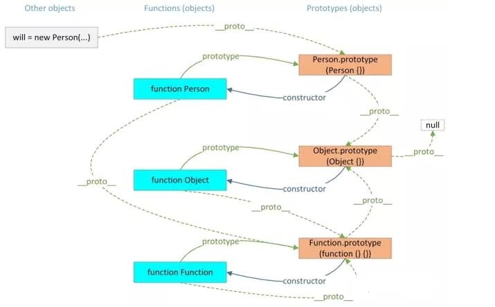 如上面例子中的構造函數,JavaScript中函數也是對象,所以就可以通過_proto_查找到構造函數對象的原型。