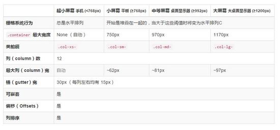 通過下表可以詳細查看Bootstrap的柵格系統如何在多種屏幕設備上工作的。