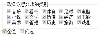 <input type="checkbox" name="hobby" value="經濟" />經濟