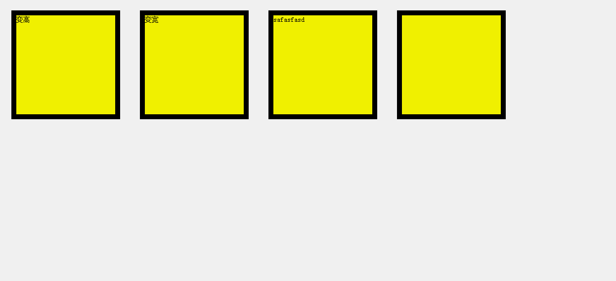 div {width:200px; height:200px; margin:20px; float:left; background:yellow; border:10px solid black; font-size:14px;}