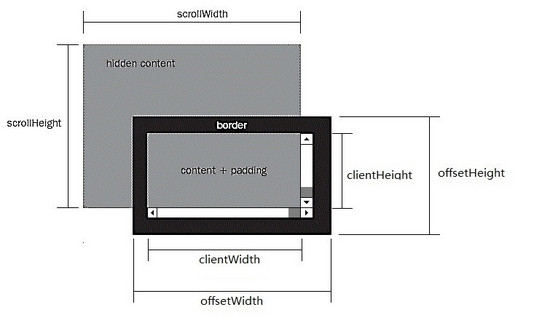 4)任何一個DOM元素,都可以通過以下api快速得到offsetWidth,clientWidth,scrollWidh及相關的height屬性: