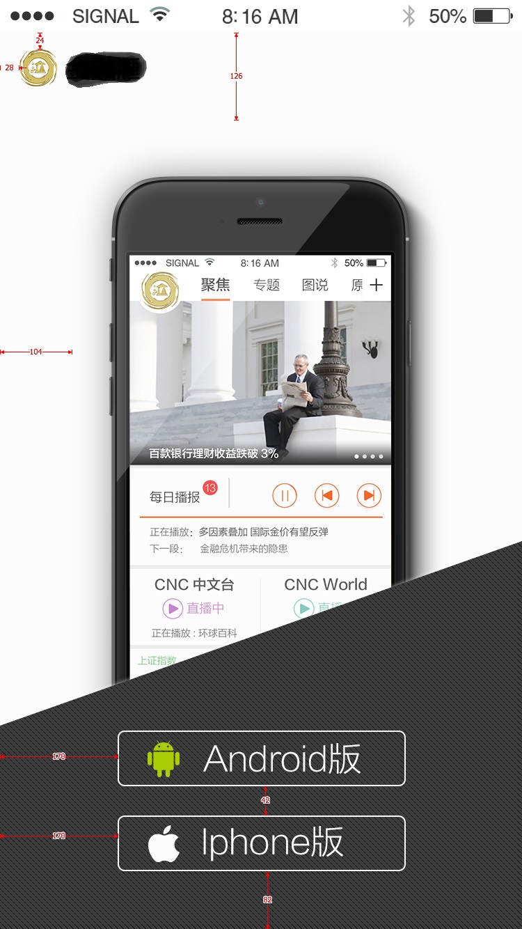 包括兩個下載按鈕的背景圖片,logo,底部梯形的漸變背景和body部分的mobile 背景圖。注意這些圖片都是在750*1334的設計稿裡面切出來的,所以尺寸都是設計稿裡的原始尺寸,比如android.png: