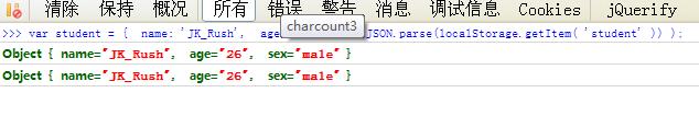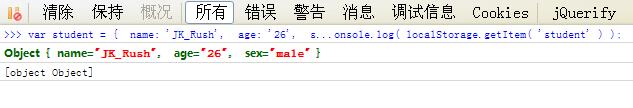假設,我們把一個student對象存儲到localStorage中,具體代碼如下:
