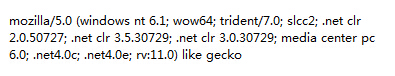 然後使用相應的正則表達式進行匹配。IE11和以前版本的浏覽器還是有較大差別的,以前的版本,這個信息中包含msie,IE11中沒有了,新增加trident,後面跟著浏覽器的版本號碼,這一點要特別注意一下。