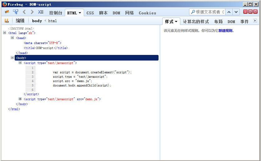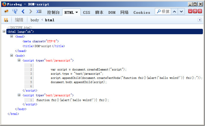 從上圖的結果中可以看到,上面代碼在<body>元素中生成了一個<script>節點: