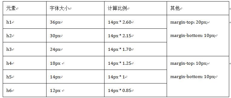Bootstrap和普通的HTML頁面一樣,定義標題都是使用標簽<h1>到<h6>,只不過Bootstrap覆蓋了其默認的樣式,使用其在所有浏覽器下顯示的效果一樣,具體定義的規則可以如下表所示: