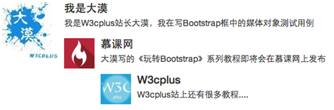 以上就是本文的全部內容,幫助大家學習Bootstrap媒體對象,希望對大家的學習有所幫助。