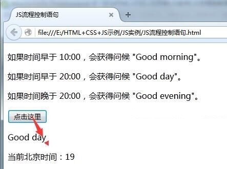 <p>如果時間早於 20:00,會獲得問候 "Good day"。</p>