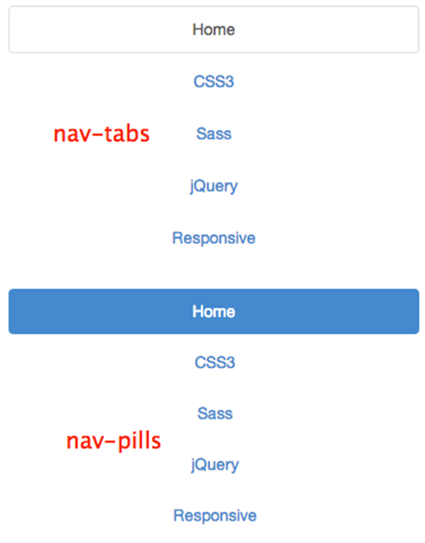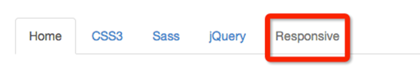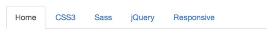 <ul class="nav nav-tabs"> <li><a href="##">Home</a></li> <li><a href="##">CSS3</a></li> <li><a href="##">Sass</a></li> <li><a href="##">jQuery</a></li> <li><a href="##">Responsive</a></li> </ul>