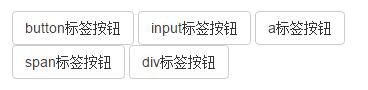 <button class="btn btn-default" type="button">button標簽按鈕</button> <input type="submit" class="btn btn-default" value="input標簽按鈕"/> <a href="##" class="btn btn-default">a標簽按鈕</a> <span class="btn btn-default">span標簽按鈕</span> <div class="btn btn-default">div標簽按鈕</div>