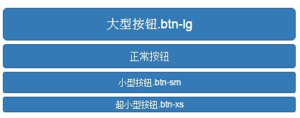 <button class="btn btn-primary btn-lg btn-block" type="button">大型按鈕.btn-lg</button> <button class="btn btn-primary btn-block" type="button">正常按鈕</button> <button class="btn btn-primary btn-sm btn-block" type="button">小型按鈕.btn-sm</button> <button class="btn btn-primary btn-xs btn-block" type="button">超小型按鈕.btn-xs</button>