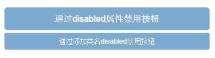 <button class="btn btn-primary btn-lg btn-block" type="button" disabled="disabled">通過disabled屬性禁用按鈕</button> <button class="btn btn-primary btn-block disabled" type="button">通過添加類名disabled禁用按鈕</button>