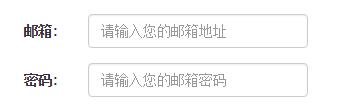 <form class="form-horizontal" role="form"> <div class="form-group"> <label for="inputEmail3" class="col-sm-2 control-label">郵箱:</label> <div class="col-sm-4"> <input type="email" class="form-control" id="inputEmail3" placeholder="請輸入您的郵箱地址"> </div> </div> <div class="form-group"> <label for="inputPassword3" class="col-sm-2 control-label">密碼:</label> <div class="col-sm-4"> <input type="password" class="form-control" id="inputPassword3" placeholder="請輸入您的郵箱密碼"> </div> </div> </form>