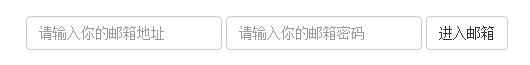 <form class="form-inline" role="form"> <div class="form-group"> <label class="sr-only" for="exampleInputEmail2">郵箱</label> <input type="email" class="form-control" id="exampleInputEmail2" placeholder="請輸入你的郵箱地址"> </div> <div class="form-group"> <label class="sr-only" for="exampleInputPassword2">密碼</label> <input type="password" class="form-control" id="exampleInputPassword2" placeholder="請輸入你的郵箱密碼"> </div> <button type="submit" class="btn btn-default">進入郵箱</button> </form>