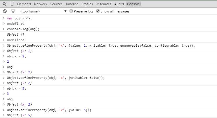 相信你也已經從實例中看出:Object.defineProperty()和Object.defineProperties()都返回修改後的對象。