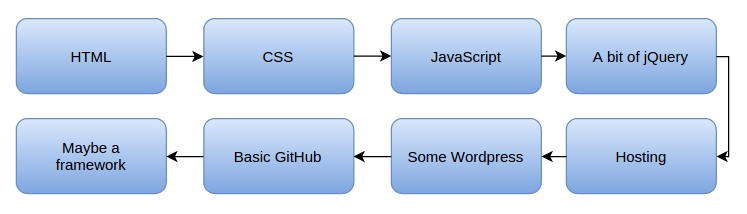 幫助擺脫這種陷阱的方法之一是畫一個你需要學習的路線圖。例如,要想成為一個前端開發者,你的路線圖可能是這樣的: