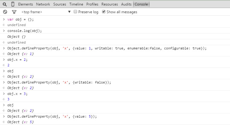 相信你也已經從實例中看出:Object.defineProperty()和Object.defineProperties()都返回修改後的對象。