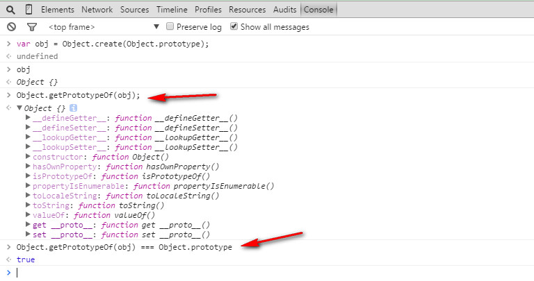 那麼,如何查詢一個對象的原型屬性呢?在ECMAScript 5中,將對象作為參數傳入Object.getPrototypeOf()可以查詢它的原型,例如: