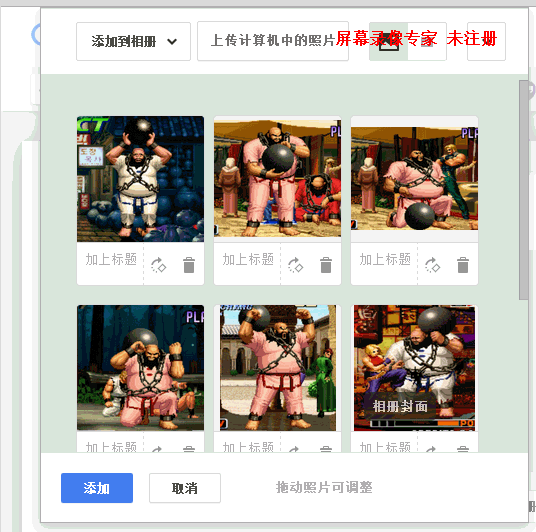 google plus是按住ctrl,點擊圖片,完成多選,這裡是點擊"方框"(這裡的`<a class='no_selected'></a>`)。