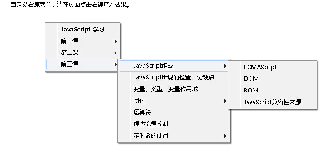 <center>自定義右鍵菜單,請在頁面點擊右鍵查看效果。</center>
