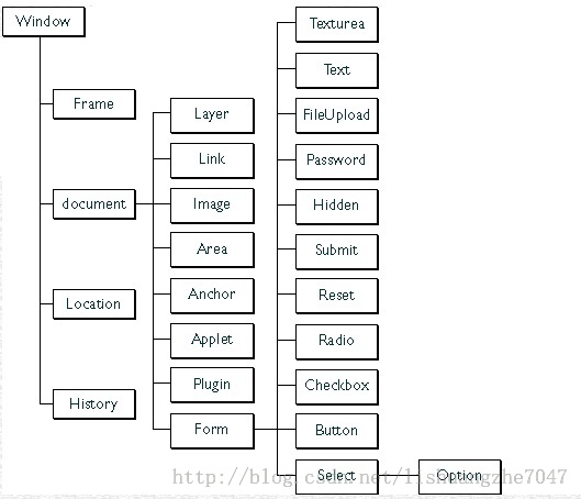 說到window對象,我們首先來看一下window中各對象間的關系。如下圖: