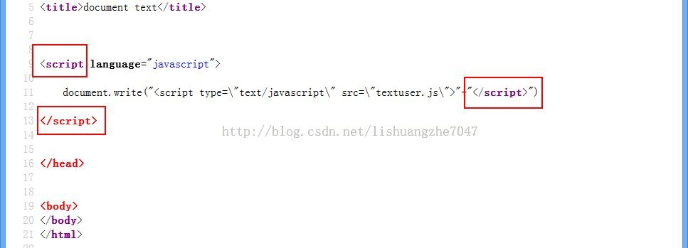 結果很明顯,如果不分開寫</script> 會和前面的<script>配對,這樣,浏覽器會提示我們有誤。