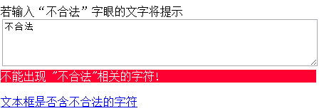 若輸入“不合法”字眼的文字將提示<br />