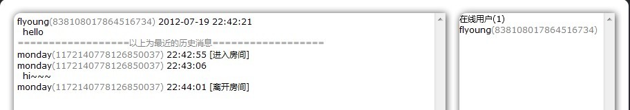 2) 當有用戶退出,其他所有在線用戶會收到信息,通知又用戶退出房間,同時更新在線用戶列表