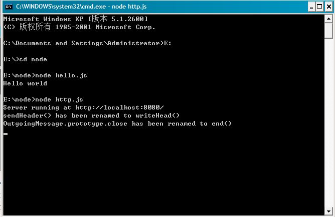 然後我們在命名台中輸入命令node http.js,在浏覽器輸入http://localhost:8080/