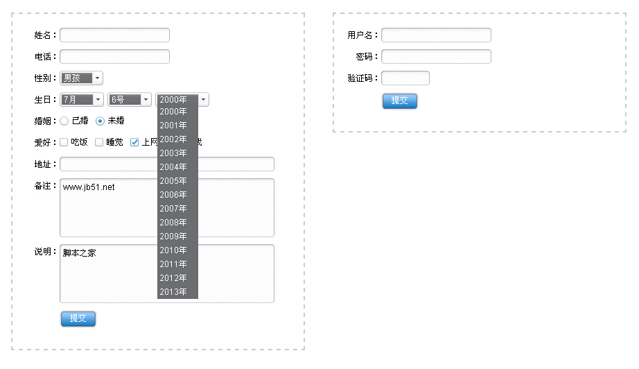 這裡演示使用JS美化並模擬網頁表單控件,十分漂亮的表單效果,使用時可以將代碼內的JS保存為文件, 方便調用,使用方法:WellForm(element) //element 為表單元素。