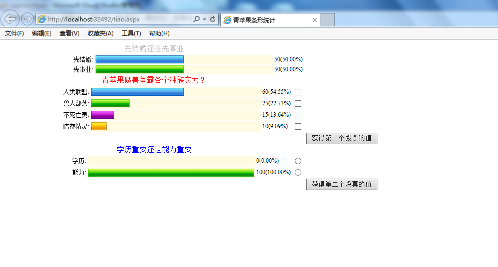 下圖為jquery實現靜態條形統計圖,在選擇題統計中用的比較多。