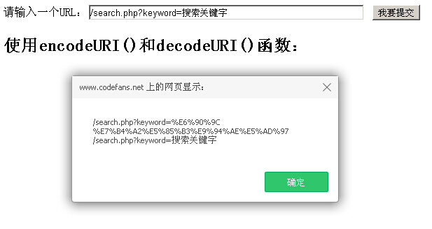 <h2>使用encodeURI()和decodeURI()函數:</h2>