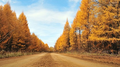面對兩側金色的樹木,內心莫名的喜悅!</p>