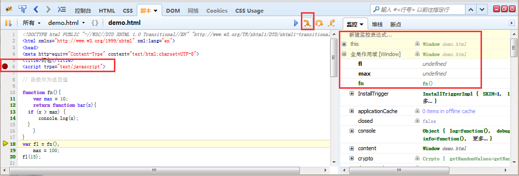 想著趁機會將上面那篇閉包博文的配圖用firebug再來演示一遍,也算是一點調試經驗分享。
