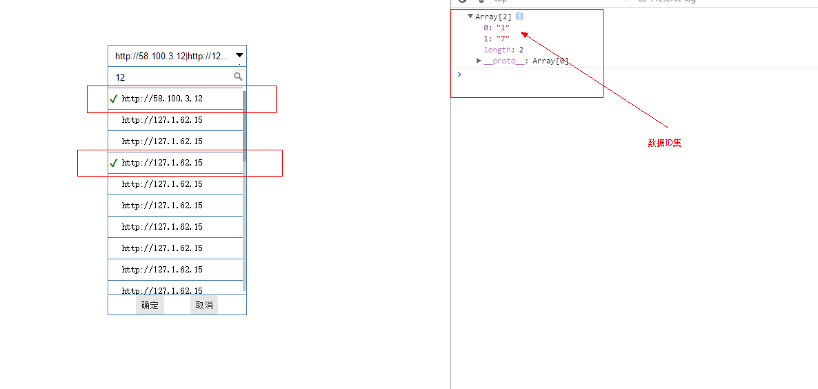 下拉數據通過參數傳遞進去,通過調用該插件時接收,選擇後的確定與取消事件采用事件傳遞方式