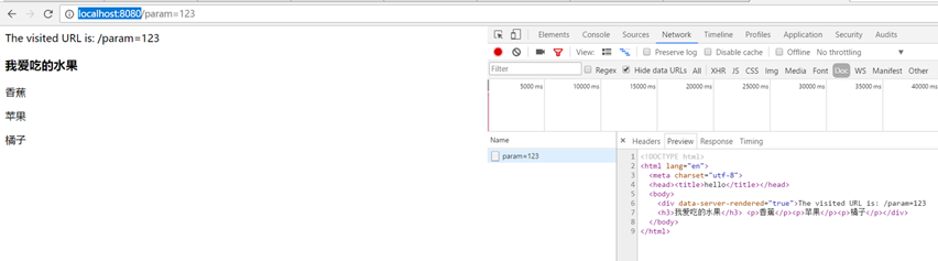 可以看到服務端直接返回了一個渲染完成的Doc,示例demo到此結束。