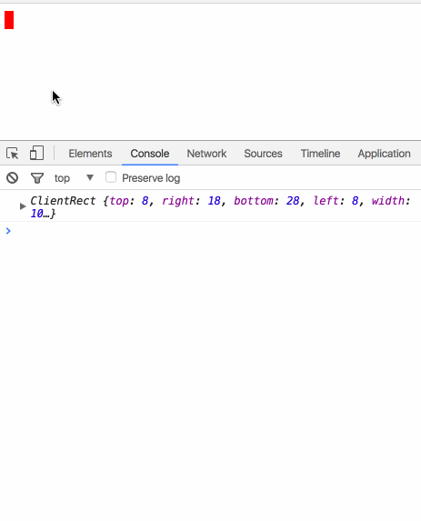 從效果圖上不難看出,當我移動視圖後再點擊body,打印的對象都能夠正確返回元素的大小及其相對於視口的位置