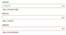 <form role="form"> <div class="form-group has-success has-feedback"> <label class="control-label" for="inputSuccess1">成功狀態</label> <input type="text" class="form-control" id="inputSuccess1" placeholder="成功狀態" > <span class="glyphiconglyphicon-ok form-control-feedback"></span> </div> <div class="form-group has-warning has-feedback"> ...... </div> <div class="form-group has-error has-feedback"> ...... </div> </form>