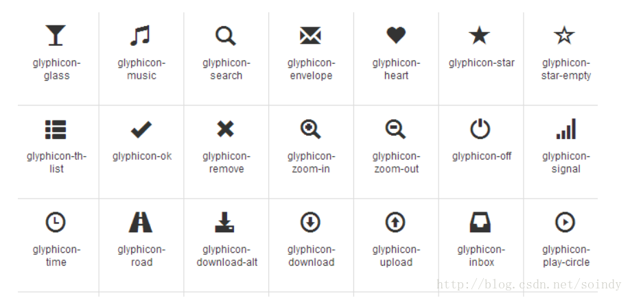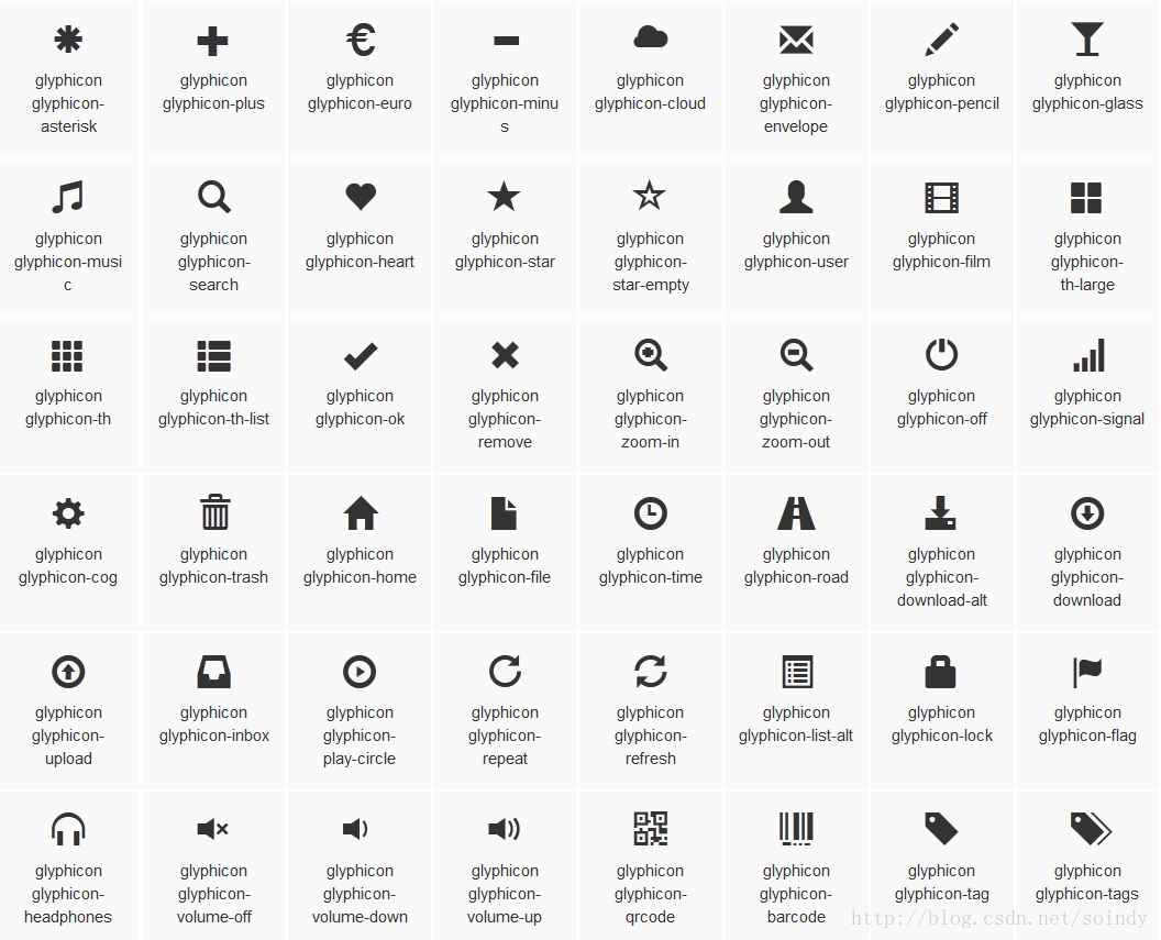 所有icon都是以”glyphicon-”前綴的類名開始,然後後綴表示圖標的名稱。具體說明如下: