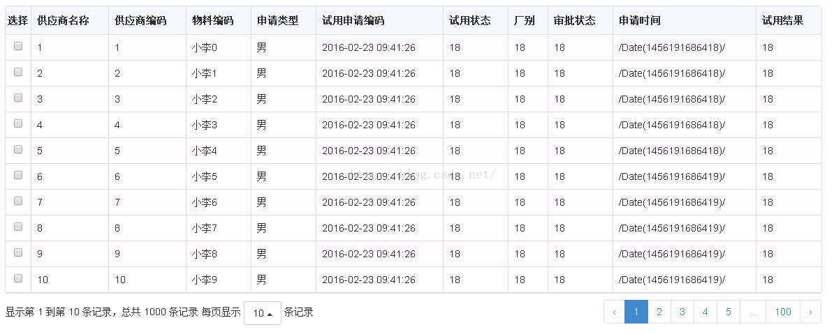 最近研究bootstrap,它僅提供視覺效果,對於數據列表之類的並未涉及,網上找了一下,找到一個Table插件。