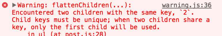 <ul> <li key="1">1</li> <li key="2">2</li> <li key="3">3</li> <li key="5">5</li> <li key="2">2</li> </ul>