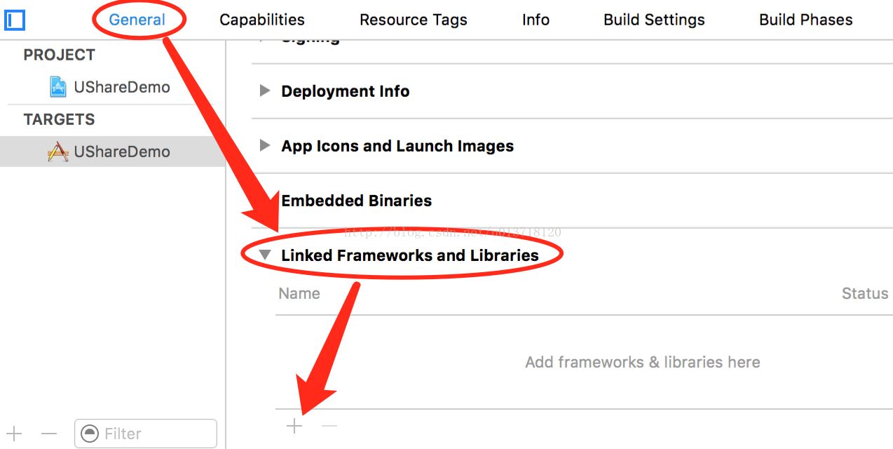 1. 將源碼中 ios 目錄下的UMSocial添加到工程,直接拖進即可