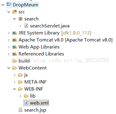<span style="font-size:18px;"><strong><?xml version="1.0" encoding="UTF-8"?> <web-app xmlns:xsi="http://www.w3.org/2001/XMLSchema-instance" xmlns="http://xmlns.jcp.org/xml/ns/javaee" xsi:schemaLocation="http://xmlns.jcp.org/xml/ns/javaee http://xmlns.jcp.org/xml/ns/javaee/web-app_3_1.xsd" id="WebApp_ID" version="3.1"> <servlet> <servlet-name>searchServlet</servlet-name> <servlet-class>search.searchServlet</servlet-class> </servlet> <servlet-mapping> <servlet-name>searchServlet</servlet-name> <url-pattern>/search/searchServlet</url-pattern> </servlet-mapping> <display-name>DropMeum</display-name> <welcome-file-list> <welcome-file>index.html</welcome-file> <welcome-file>index.htm</welcome-file> <welcome-file>index.jsp</welcome-file> <welcome-file>default.html</welcome-file> <welcome-file>default.htm</welcome-file> <welcome-file>default.jsp</welcome-file> </welcome-file-list> </web-app></strong></span>