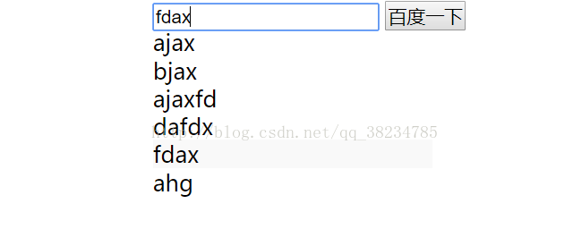 首先浏覽實現後的結果,輸入一個a之後會出現包含a的下拉列表,當我們點擊某一個的時候,搜索框中就會出現點擊的值。實現所需要的主要是ajax+js。